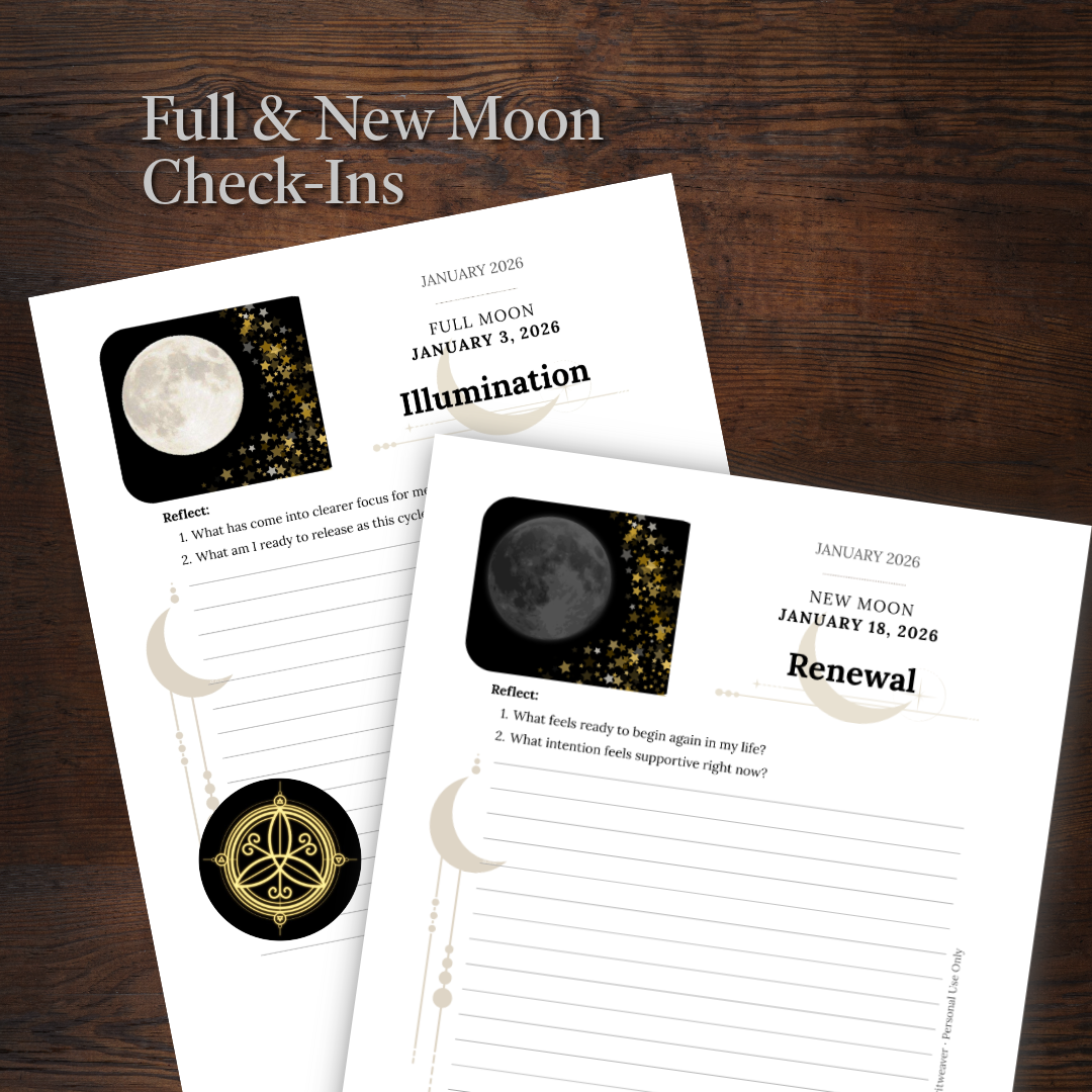 A lunar journaling practice with new and full moon prompts for reflection, creativity, and emotional clarity.